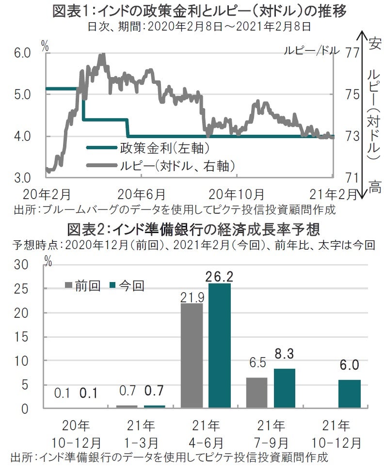 インド準備銀行(中央銀行)は2021年2月3~5日に開催した金融政策決定会合で、市場予想通り政策金利を年4.0%で据え置くことを決定しました(図表1参照)。