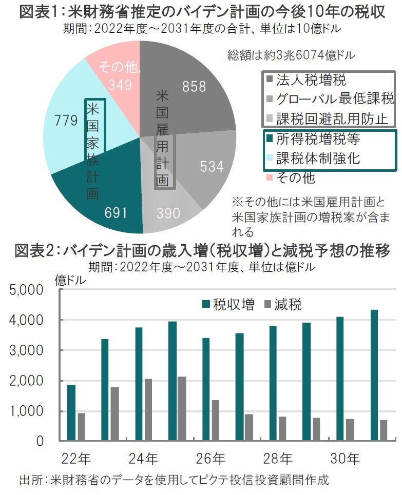 一方、米財務省は同日、28日のレポートでバイデン米大統領の増税案が成立した場合の税収予想の見通しを示しました(図表1、2参照)。
