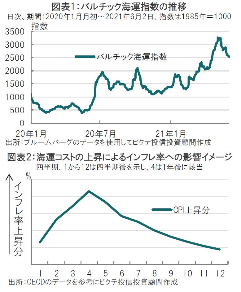 足元のインフレ率上昇の背景として、昨年の物価下落の反動、石油など商品価格の上昇など様々な要因が指摘されています。サプライチェーンの混乱で海上コストの大幅上昇も注目される要因です。先月末に公表された経済協力開発機構(OECD)の世界経済見通しの分析などを参考に、物価への影響を振り返ります。