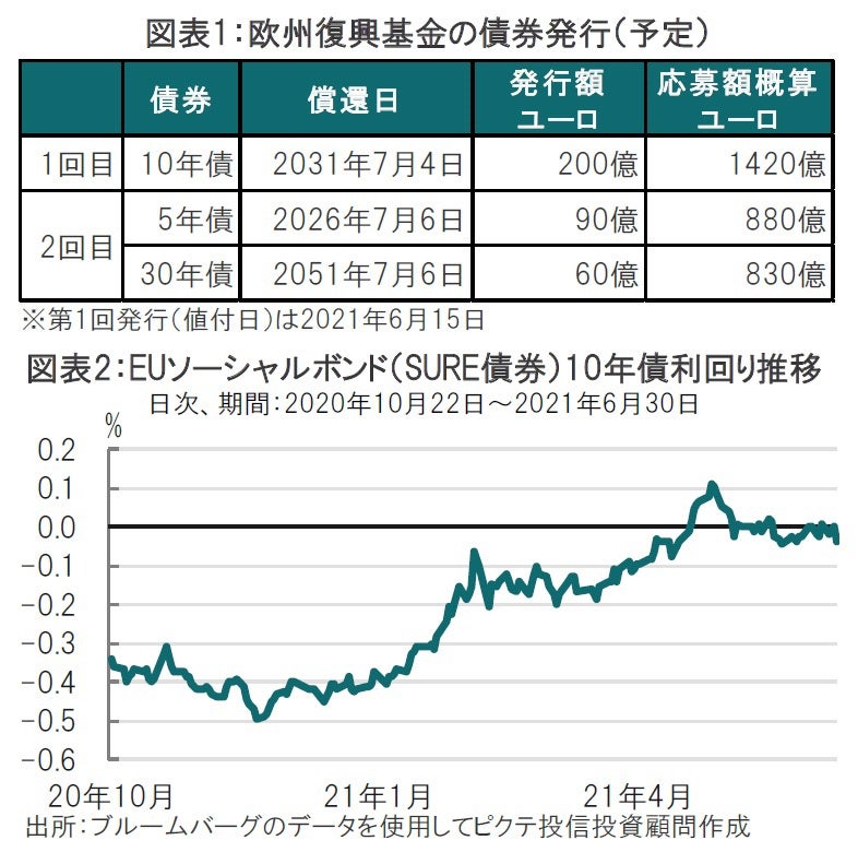 第1回目の欧州復興債(NGEU債)における満期までの期間は10年でしたが(図表1参照)、2回目となる今回は5年債と30年債を発行し、年限が多様化されました。