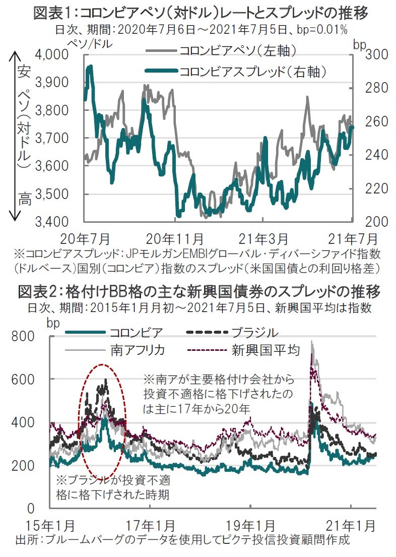 なお、コロンビアの格付けはS&Pグローバル・レーティング(S&P)が5月19日に外貨建て長期債をBB+としており(自国通貨建て長期債格付けはBBB-)、コロンビアの格付けは2社から投資不適格(一般にBBB-未満)とされました。