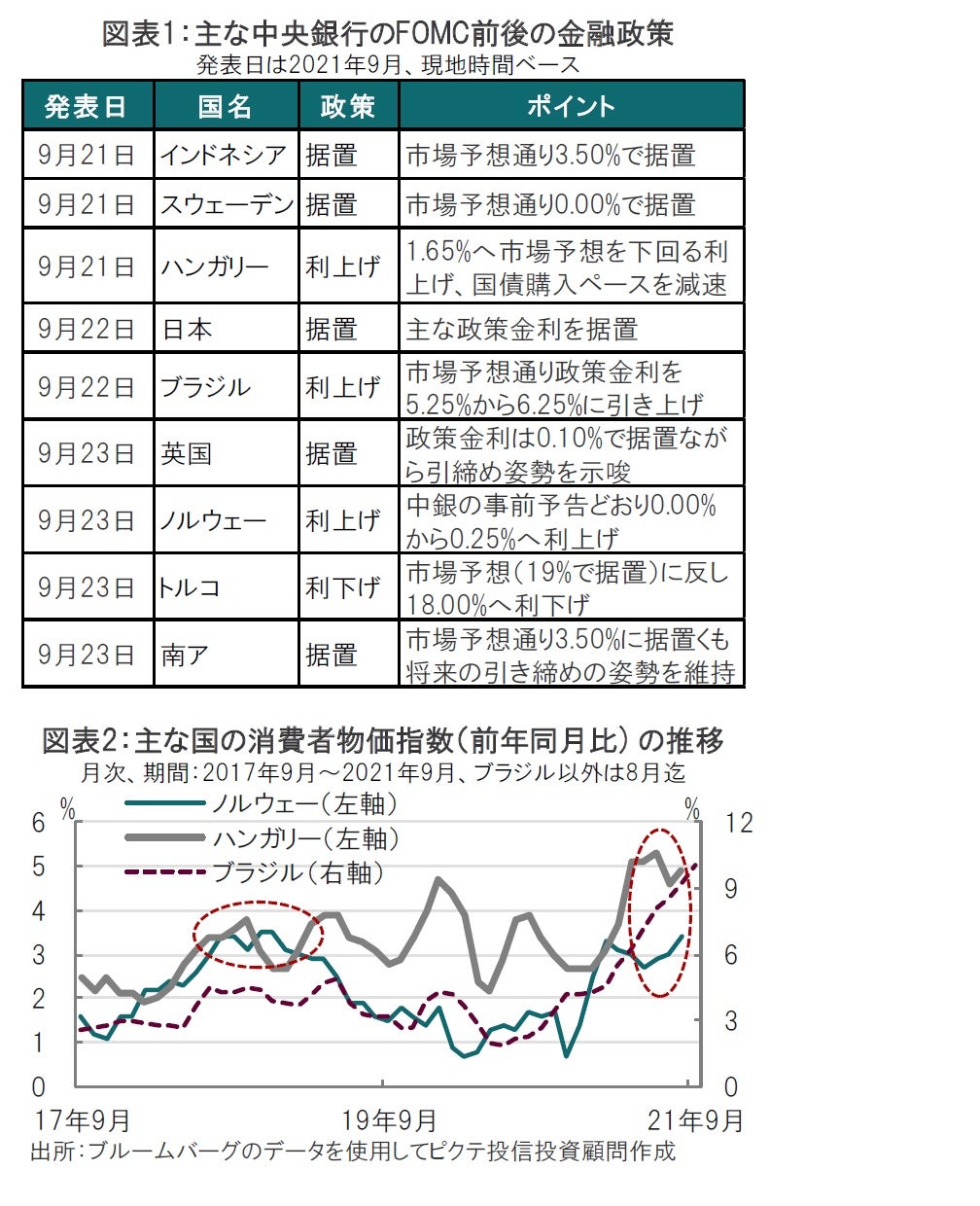 日本やインドネシアはインフレ率が低水準で推移しており、金融引締めにシフトする理由が乏しいように思えます。例えばインドネシアのCPIは8月は前年比で1.59%で、日本はマイナス圏です。両国とも当面据置きが想定されます。しかし、米国の利上げは、早ければ22年後半も視野に入り始めています。今はインフレ率が低い他の新興国も含め、今後は米利上げを意識した政策運営を迫られる国もありそうです。