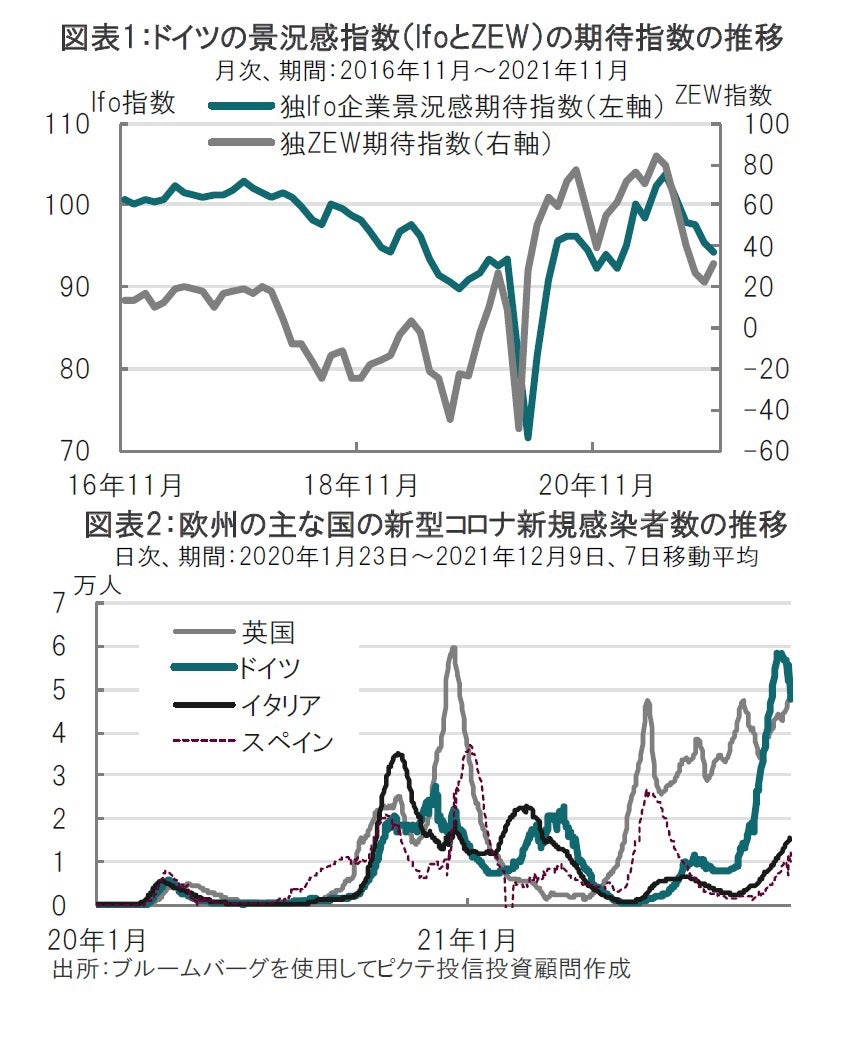 まず、目先の問題に新型コロナウイルスへの対応があげられます。足元で公表されたドイツの景況感指数のうち、半年程度先の動向を想定する期待指数に鈍化が見られます(図表1参照)。
