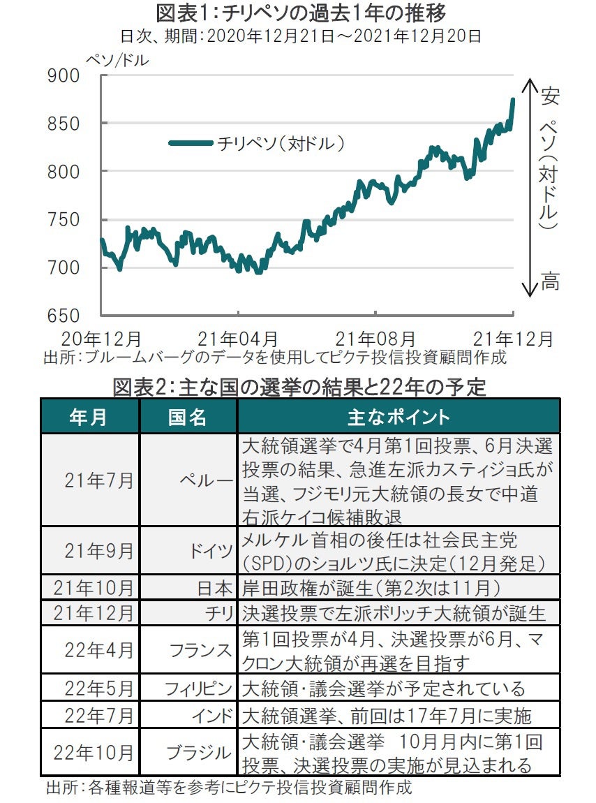 まず、今年の選挙を振り返ると、ペルーやチリなどで左派政権が誕生しました。新型コロナの影響が残る中、分配による格差是正、低所得者への支援を掲げる左派に票が集まりやすい傾向が残っていた可能性はあります。