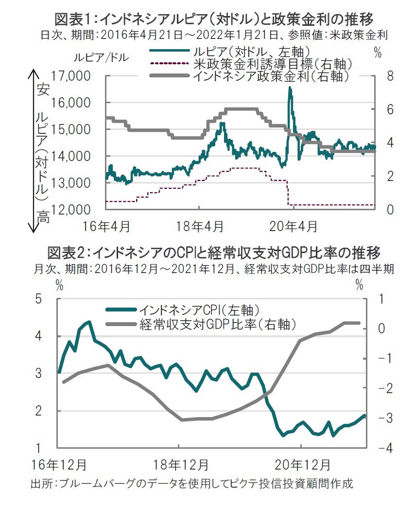 なお、20年3月頃に新型コロナウイルスによる景気への深刻な懸念を背景にルピアに限らず新興国通貨が急落した局面では、米連邦準備制度理事会(FRB)が新興国などにドル供給をしたこともあり、金融緩和姿勢を維持しました。