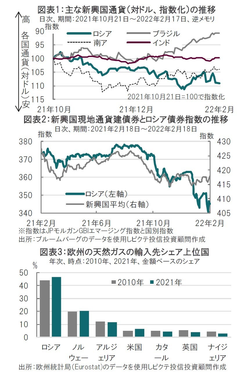 ウクライナ情勢の悪化は、ウクライナとウクライナを支持する米国を含む北大西洋条約機構(NATO)とロシアとの間でウクライナのNATO加盟を巡る争いと見られます。米国の利上げ観測が悪材料となっている新興国にとって、追い討ちをかける事態となっています。