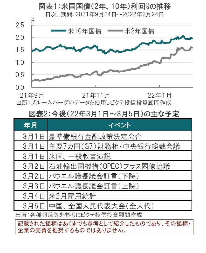 市場動向は当面ウクライナ情勢に左右されそうですが、来週は注目したいイベントが目白押しです(図表2参照)。