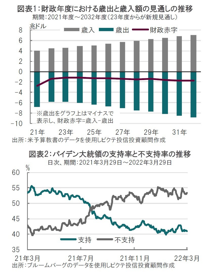 昨年夏以降低下した支持率が回復しないバイデン大統領にとり人気回復の起爆剤となるのか(図表2参照)、米国議会における今後の予算審議が注目されます。