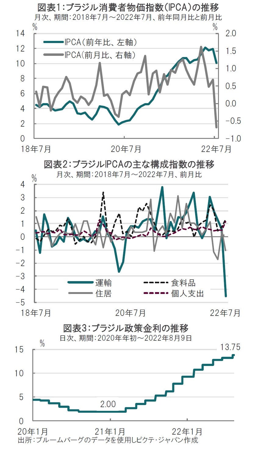 ブラジル地理統計院が2022年8月9日に発表した消費者物価指数(IPCA)によると、7月は前年同月比で10.07%上昇となりました(図表1参照)。11ヵ月連続で10%超の上昇となっています。
