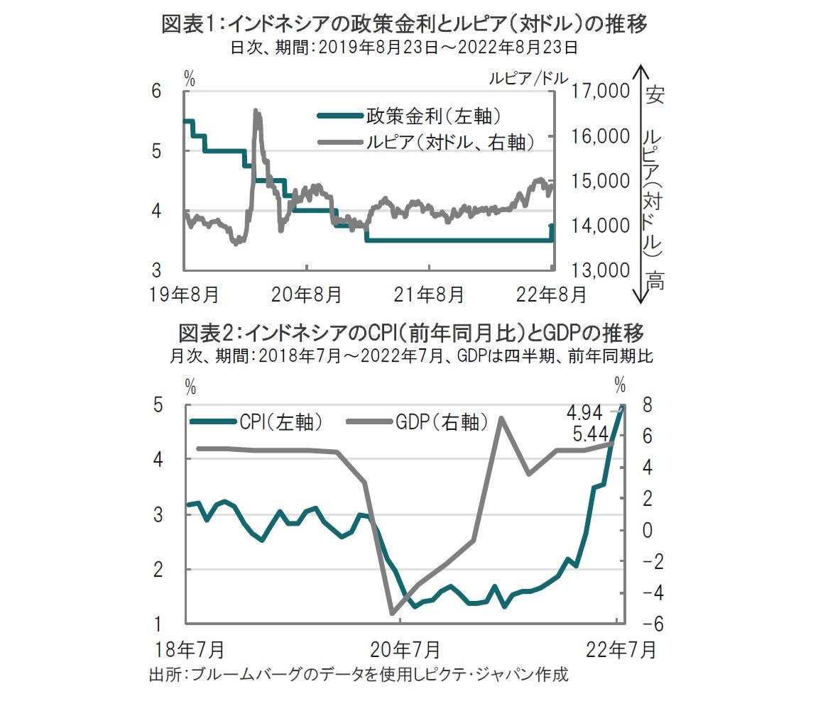 インドネシア中央銀行は2022年8月22、23両日の政策決定会合で、政策金利(7日物リバースレポ金利)を0.25%引き上げ、3.75%にすることを決定しました(図表1参照)。