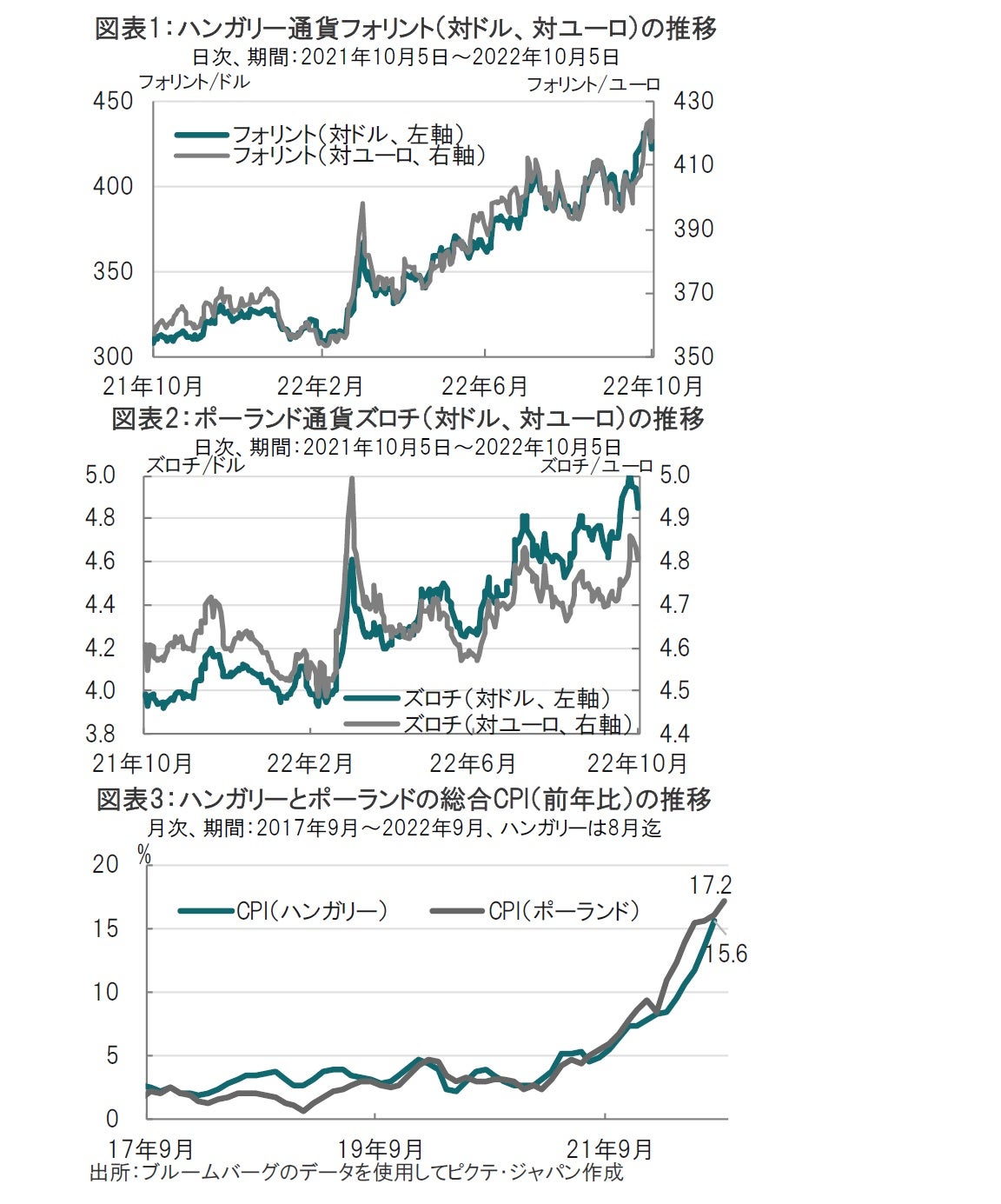 東欧の主要国であるハンガリーやポーランドの通貨の下落傾向が続いています(図表1、2参照)。年初来、ポーランドの通貨ズロチとハンガリーの通貨フォリントは、対ドルでズロチが約17%、フォリントは24%弱下落しています。