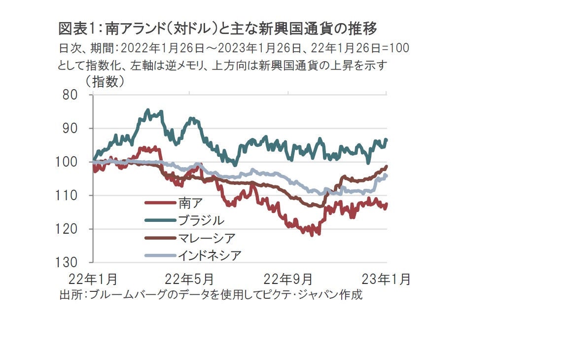 主要新興国通貨はおおむね堅調に推移しています。昨年11月の米連邦公開市場委員会(FOMC)で利上げペース減速を示唆、翌月のFOMCで利上げ幅を縮小した動きが背景の1つとみられます。