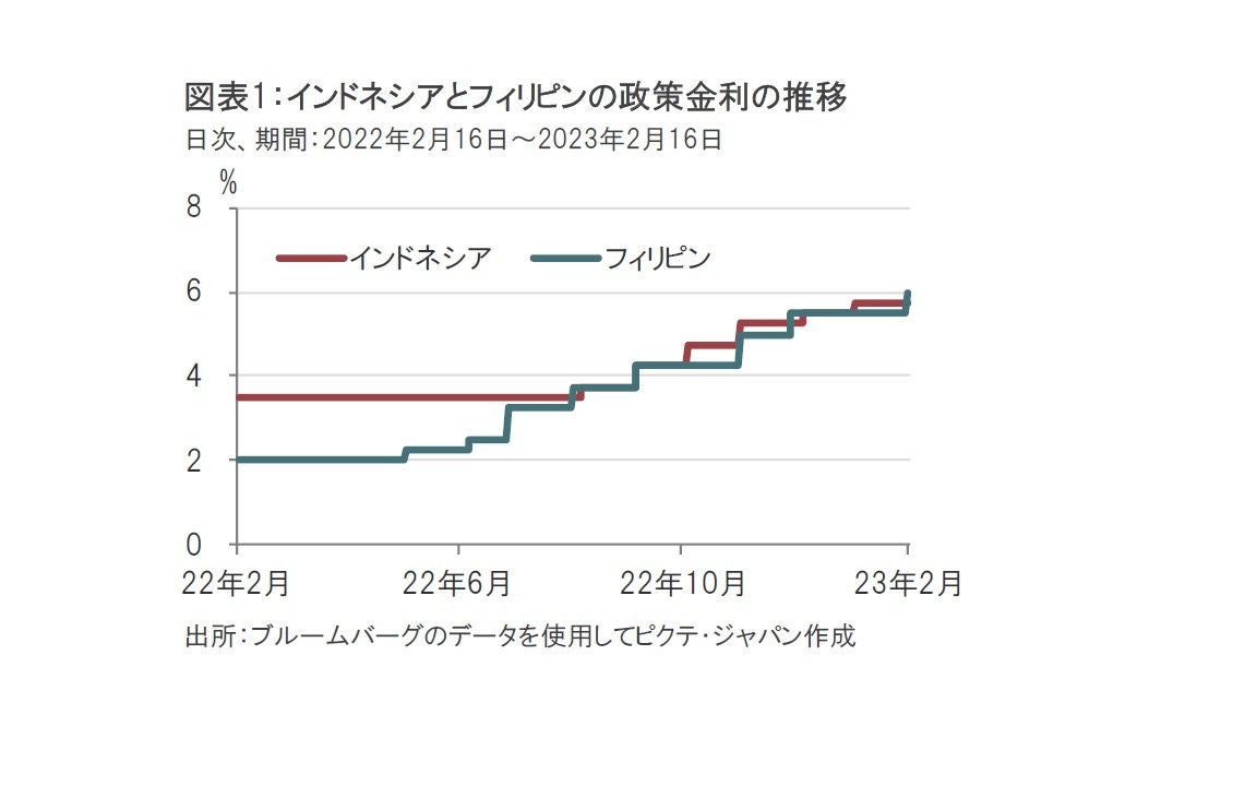 米連邦準備制度理事会(FRB)が22年3月に利上げを開始した後、インドネシアやフィリピンなど多くの新興国は通貨安を抑制するため、時期は国により異なりますが、利上げを開始しました。FRBは利上げ幅を縮小させながらも、現段階で市場は年前半、利上げを続ける可能性を見込んでいます。