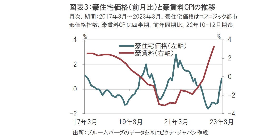 例えば、豪住宅価格を見てみると、わずかですが底打ちの兆しが見られます(図表3参照)。もっとも声明文では住宅価格の回復は鈍いと見込んでいるようです。一方で懸念しているのは住宅賃料です。声明文でも過去数年で最も上昇ペースが速いことを指摘しています。