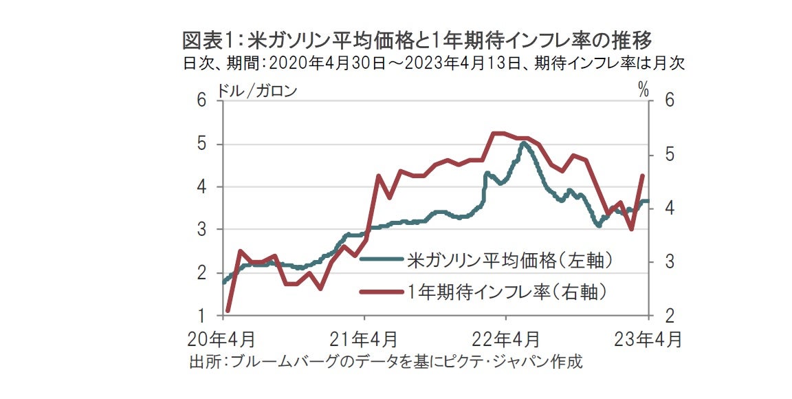 同調査は主に4月前半に実施されたため、3月に発生した金融不安についてはやや落ち着きを取り戻したように見られます。また、同時期は米国のガソリン価格が上昇していたこともあり、短期の期待インフレ率の押し上げ要因となったようです。