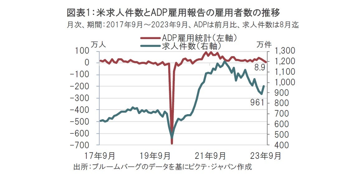 米国8月の求人件数と、9月のADP雇用報告の主な指標は対照的な結果