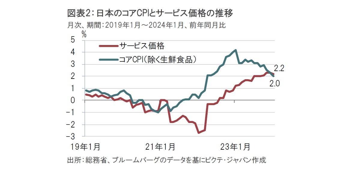 日本の1月のCPIでは、サービス価格に賃金上昇を反映した動きか