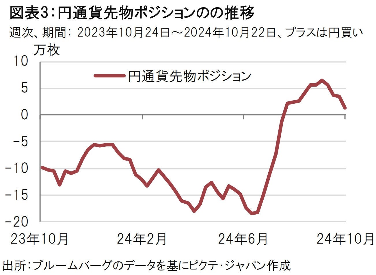 日本の低金利が長期化する中、市場では円を売って資金を調達し、高金利通貨などに投資する「キャリー取引」が行われていました。キャリー取引の実態はわかりづらいですが、目安として米商品先物取引委員会(CFTC)が発表している投機筋(非商業部門)の持ち高(ポジション)が参照されます(図表3参照)。7月の政府・日銀による円買い為替介入と、日銀の利上げを受け、急速に円売りポジションが解消された様子です。このことはキャリー取引で買われていた資産の売りを引き起こしたとみられます。