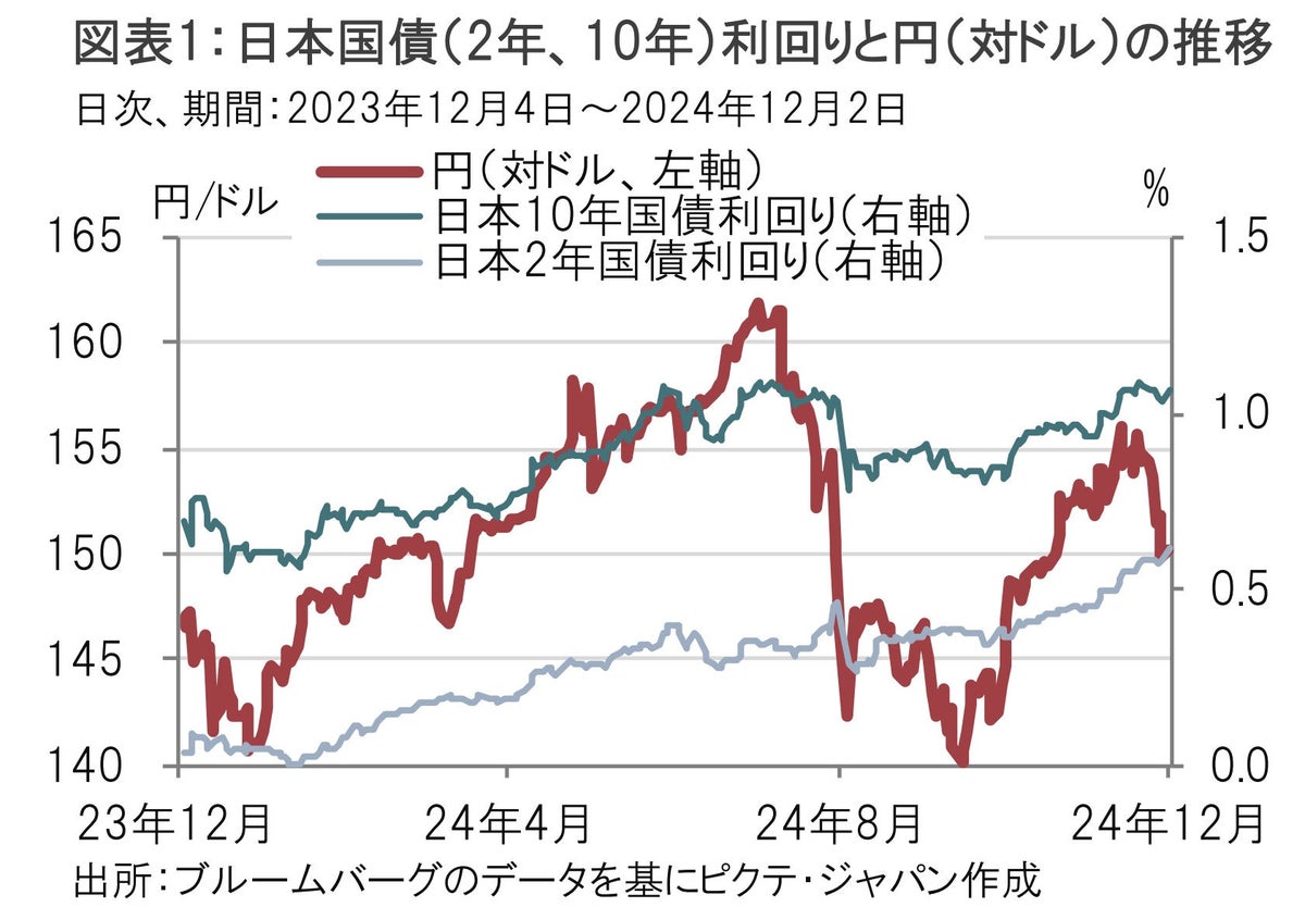 市場の30日の記事への見方は分かれていますが、足元は円高傾向です(図表1参照)。
