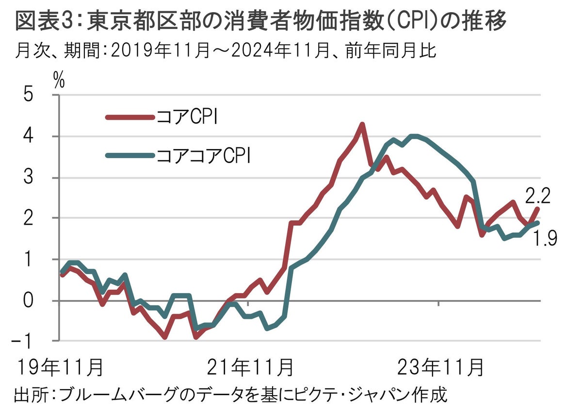 日銀の金融政策は日米金利差を背景とした為替動向や米国の経済政策、とりわけトランプ次期大統領の政策に左右されそうですが、ここからは日本の経済指標、特にインフレ指標を確認します。