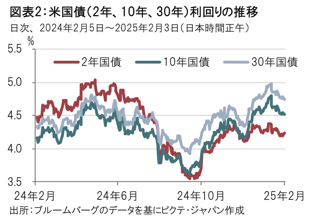 大統領令に基づく関税は2月4日発効するとされ、関税対象国から関税回避の対応策が出されれば発効されない場合もある。市場の一部にはぎりぎりでの回避を期待する声もあるが、カナダ、メキシコ、中国は報復措置を示唆しており、事態がエスカレートする可能性にも注意は必要だ。