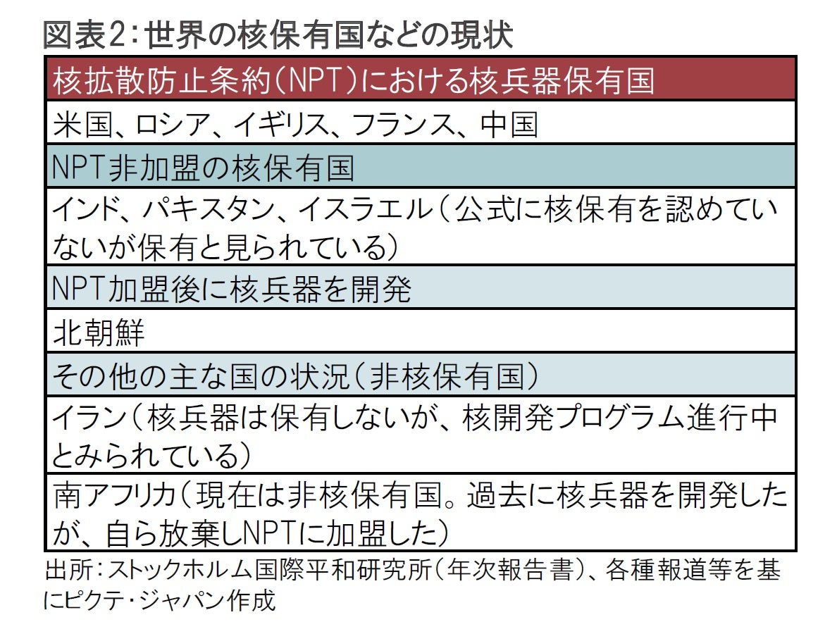 次に、イランの核保有はイスラエルだけでなく、中東の戦力バランスを崩す恐れが挙げられる。そうなると中東諸国もイラン支持は打ち出しにくい。ストックホルム国際平和研究所によると、世界で「核弾頭」を保有している国は現在9ヵ国とされている。中東ではイスラエル(公式に核保有をみとめていないが)を除けば保有国はない。