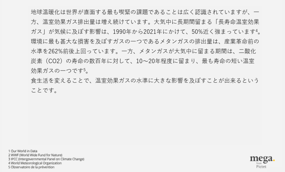 - 最後に、技術の進化によって、食品関連の電子商取引(e-コマース)、個々人の体質に合わせた栄養改善(個別化栄養)、(食品の移動の追跡を可能にする)食品トレーサビリティなど、新しいタイプの投資の機会が生まれています。